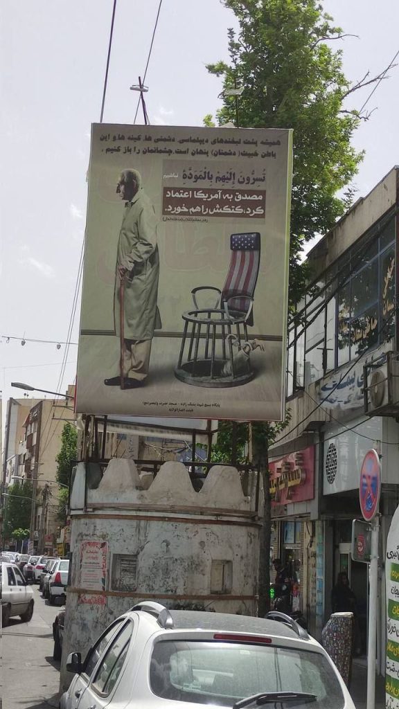رزشی ها بنرهایی در شهر نصب کردهبا این موضوع که مصدق به آمریکااعتماد کرد و باعث کودتا علیه اوو براندازی قدرتش شد. راهبری نوشته نگار کورکور، خواهر زندانی سیاسی محکوم به اعدام مجاهد کورکور، درگذشت احمدینژادرئیس جمهور دولت نهم و دهم گفت:آمریکا مقصر نبوده و نیست.