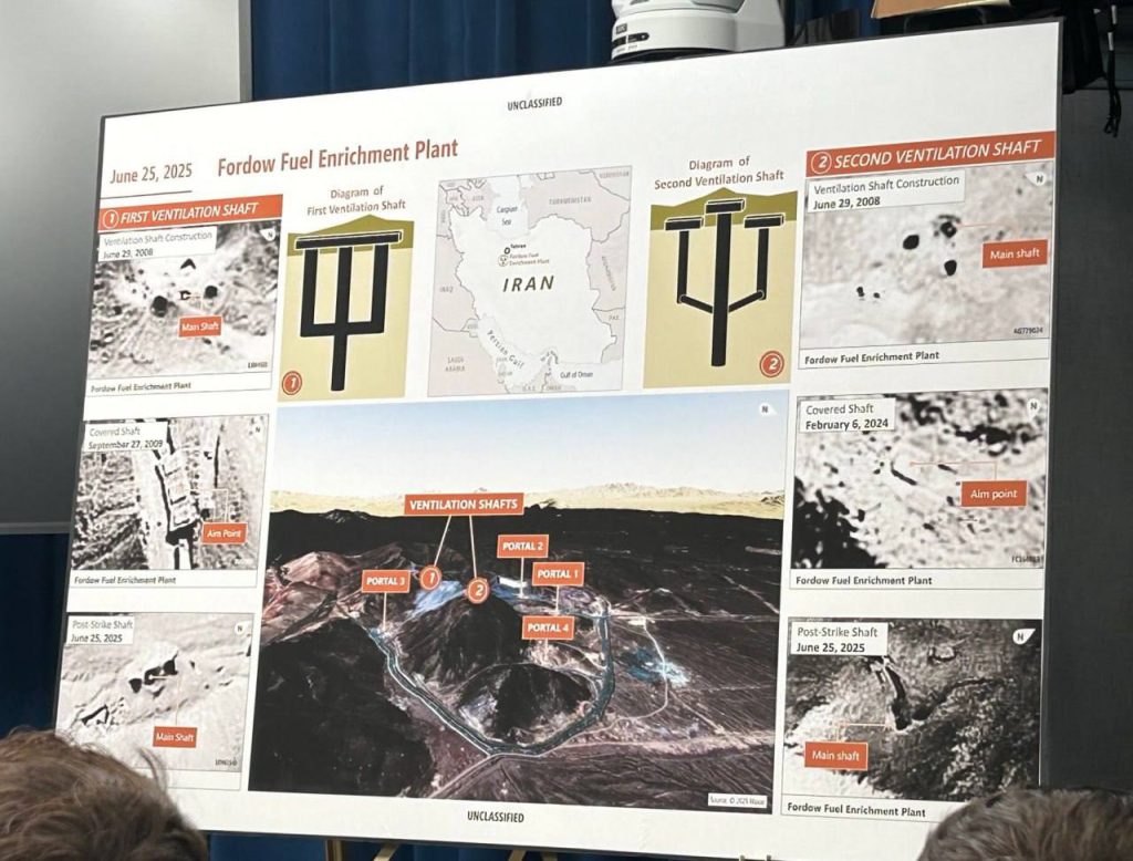 به گفته‌ی وزیر دفاع آمریکا، پیت هگست، اولین بمب سنگرشکن (MOP) برای برداشتن پوشش بتنی استفاده شده، سپس ۵ بمب دیگر از یک سوراخ وارد فوردو شدند. دو سوراخ دیگر که گمان می‌رفت محل برخورد باشند، در واقع بخشی از سیستم تهویه هستند.